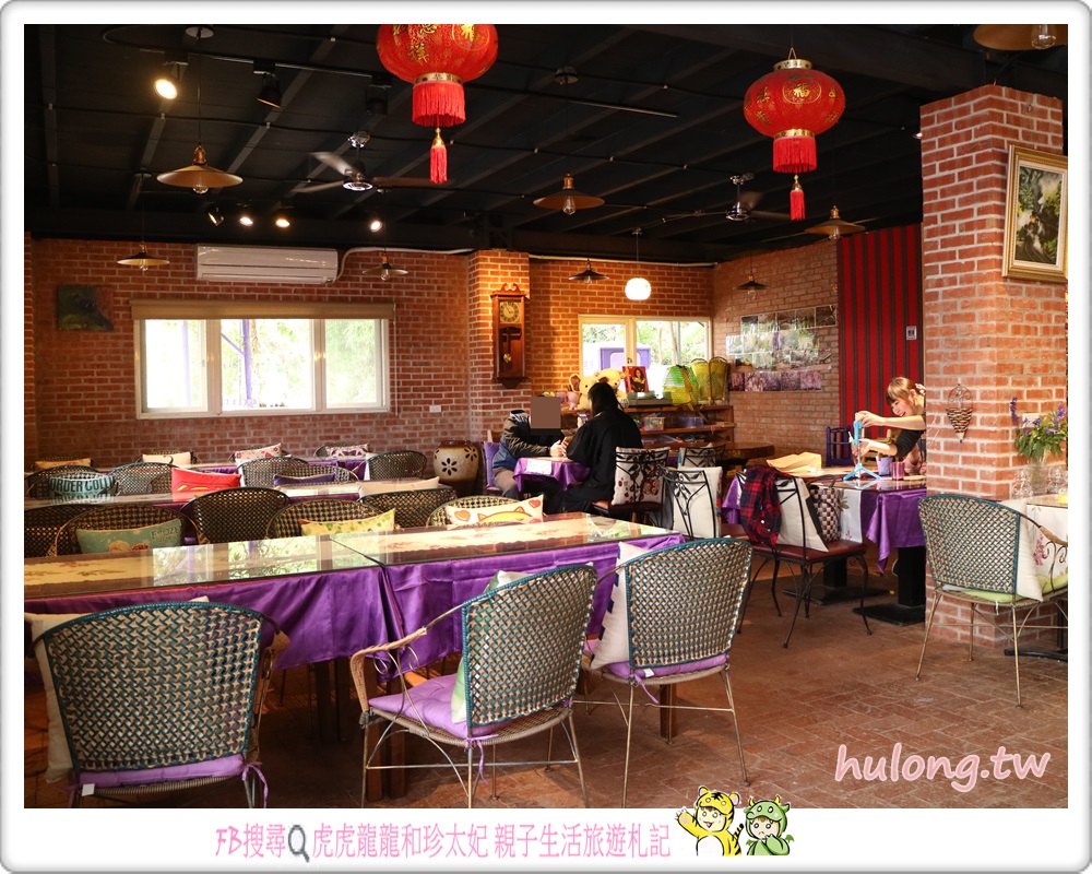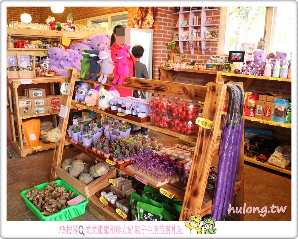 點餐區都在室內這邊,裡面還有販售許多紫色小物和農產品,咖啡屋的後方有許多店家種植的蔬菜水果,看的到的生態園區令人感覺特別的新鮮