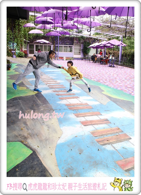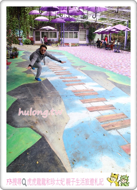 一旁還有滿地的粉紫泡泡彩繪,可惜今天沒有藍天白雲,要不拍出來的景像肯定更加漂亮了