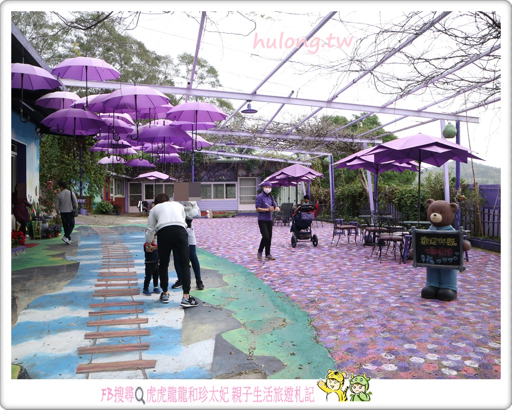 還有呼應紫色浪漫的IG打卡傘裝飾,整座咖啡屋充滿了滿滿的『紫』氛圍,當天正好有一株楓葉轉紅中,也許過一、二禮拜就能來這裡欣賞楓景了~
