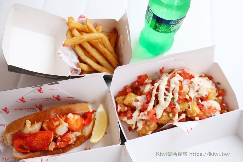 康乃狄克龍蝦堡(左下)、龍蝦莎莎薯球(右下)、酥炸脆薯+飲品(上方)。哇看到這些食指大動的鮮紅顏色,躍躍欲試的想把餐點都一併吃下肚了啦!