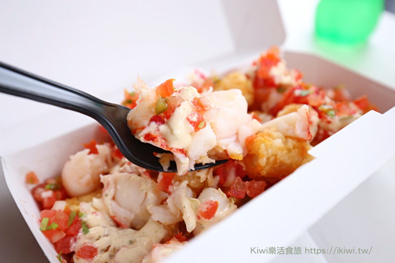 店家在放龍蝦一點也不手軟,薯球上滿滿都是龍蝦,再淋上特製的莎莎醬,份量滿滿讓人拿起叉子都不知道該往哪裡下手>”<。