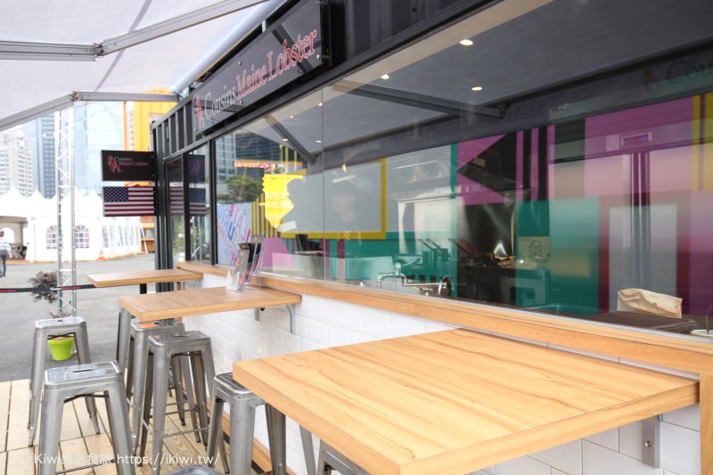 老闆將這個理念用在在台灣,Cousins Maine Lobster設計上,簡單呈現放鬆的氛圍,高腳椅搭著木桌,讓人想入內用餐,從Kiwi買完後發現人潮不斷,龍蝦堡的獨特魅力我想品嚐過的人才能知道吧!