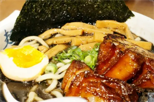 ◎整碗拉麵上場很有看頭,五花叉燒超厚實燒烤得油亮很吸睛,入口軟嫩真好吃…