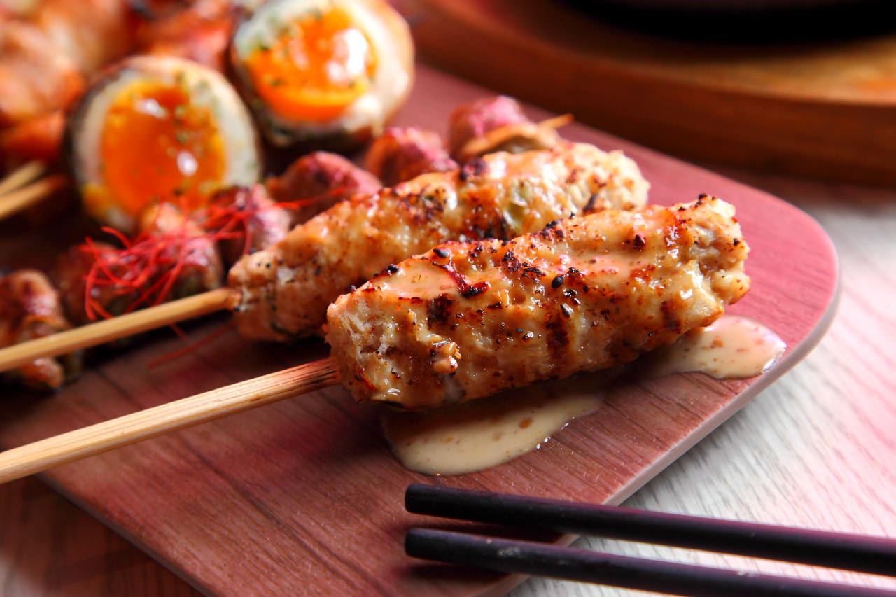 是燒鳥串道自製的雞肉棒,手工雞肉丸子是採用雞肉混合軟骨做成的,新鮮的雞肉鮮甜肉汁搭配胡麻醬汁,吃起來真的是非常鮮嫩多汁,有著胡麻的清香及濃郁的鮮甜肉香,好好吃!