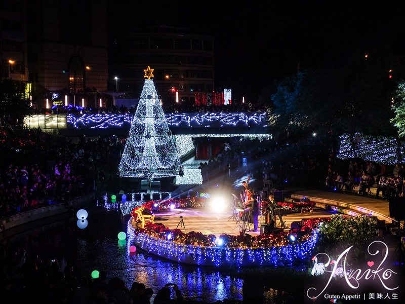 這週末正好趕上柳川藍帶水岸的聖誕節點燈活動,全台首座水中聖誕樹好美呀!!!!