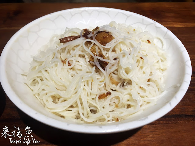 白麵線配著些許的油蔥,清淡但有著香味,很適合配著店內的燉雞湯食用