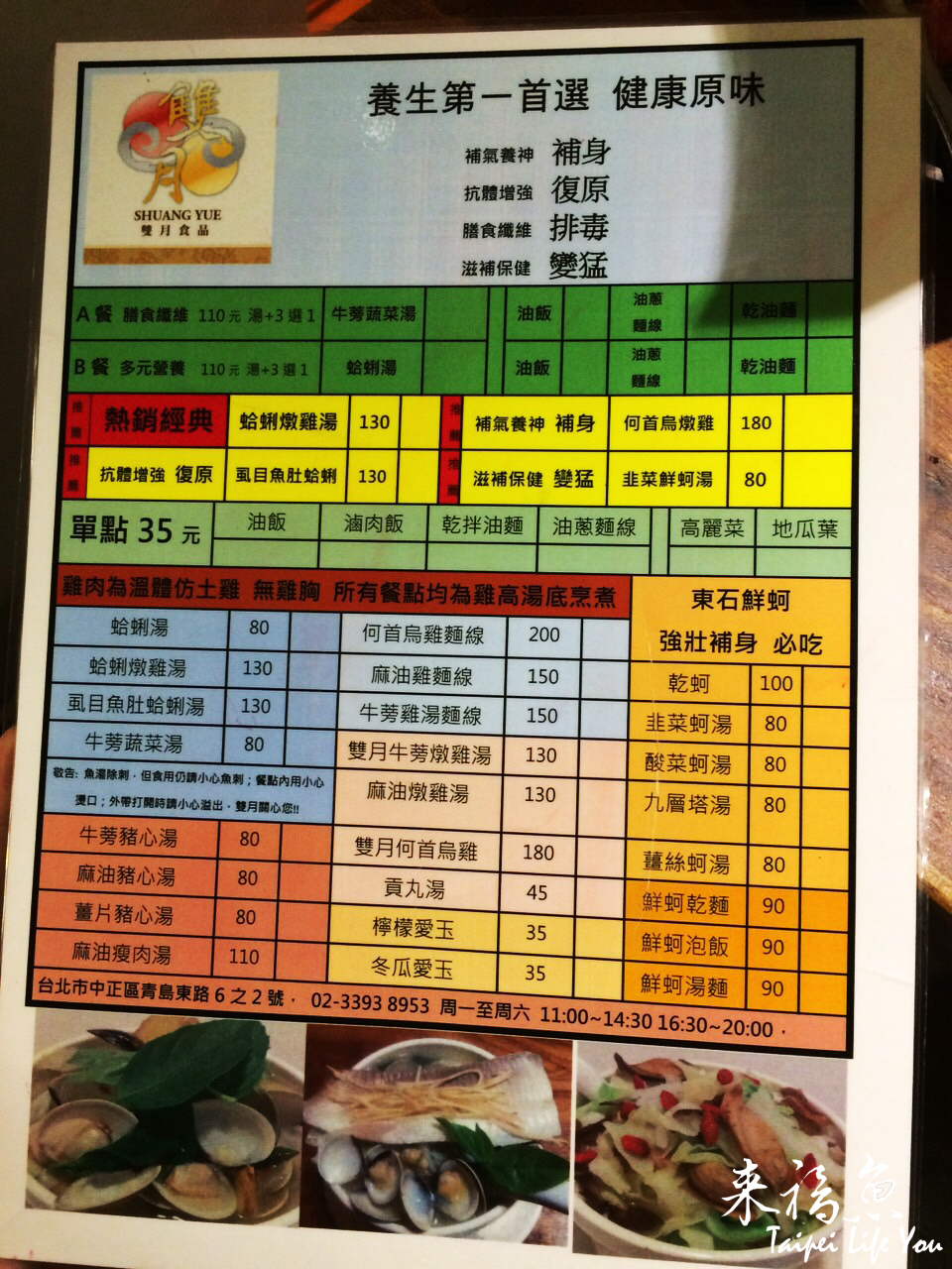 春寒料峭的三月天,也是流感猖獗的季節,該適時進補一下身體,但是現在主打著健康食補的餐廳越來越多,找到真材實料的店家也是很重要,這家《雙月食品社》可以說是台北人想滋補時必來的排隊店了,每次經過總是絡繹不絕的人潮啊!