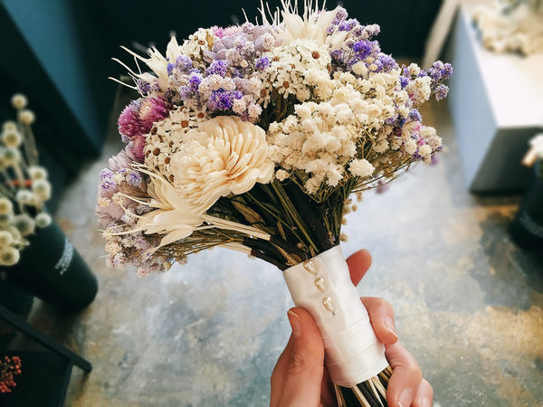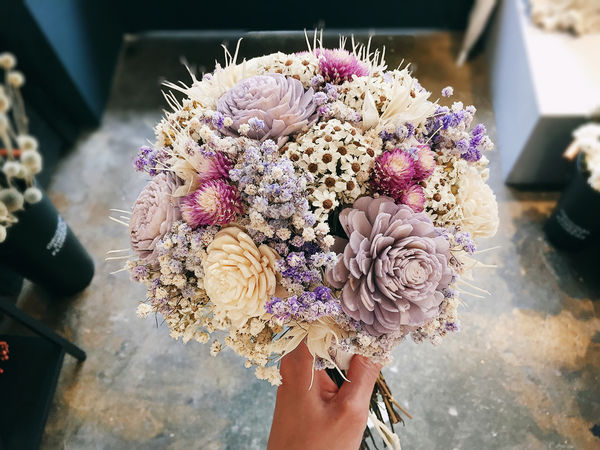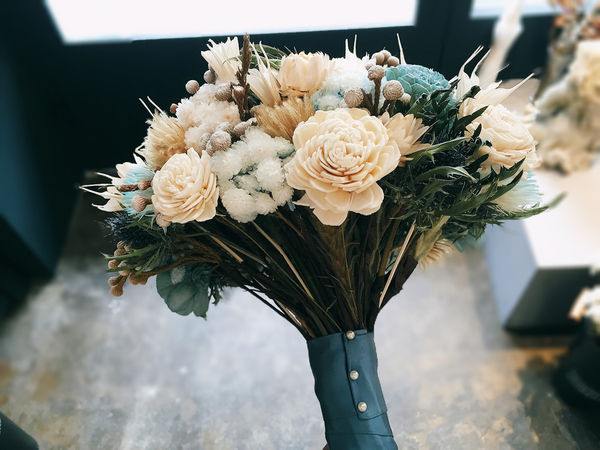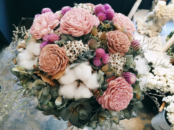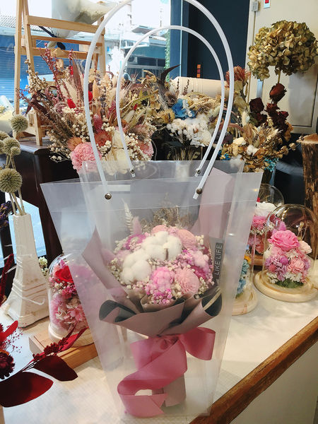店內最受顧客歡迎的是新娘捧花、乾燥花鐘以及禮物花束。