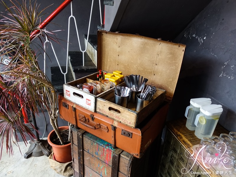 自助餐具和醬料區則是用一咖復古皮箱裝盛 😉 飲用水也是一旁自取喲