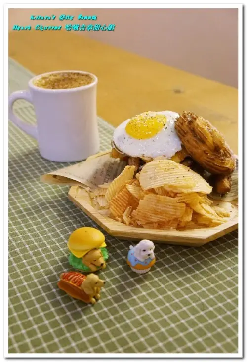 肉排有三種選擇,當天吃的是豬五花,肉排口感與調味都不錯,配上起司生菜與一個煎的好美的太陽蛋,特別的是中間還夾了泡菜
