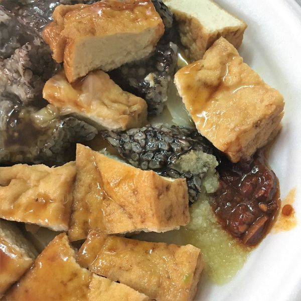 吃的到黃豆的香味,切盤都會淋些許的醬油調味,吃的時候再沾一下附的辣豆瓣醬&蒜泥,讓人吃得很續嘴