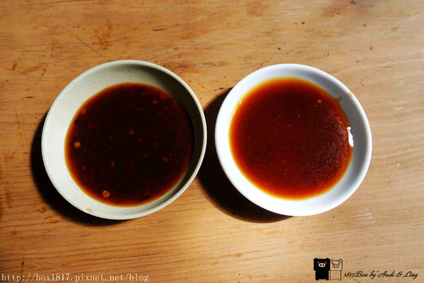 我們點的蚵仔嗲先上桌了,醬料及餐具要自取,