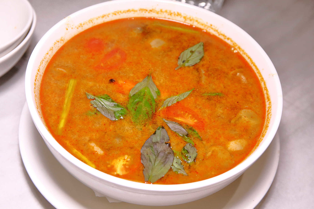 必點的泰式酸辣海鮮湯,紅紅豔豔、酸酸辣辣,湯頭味道好極了!