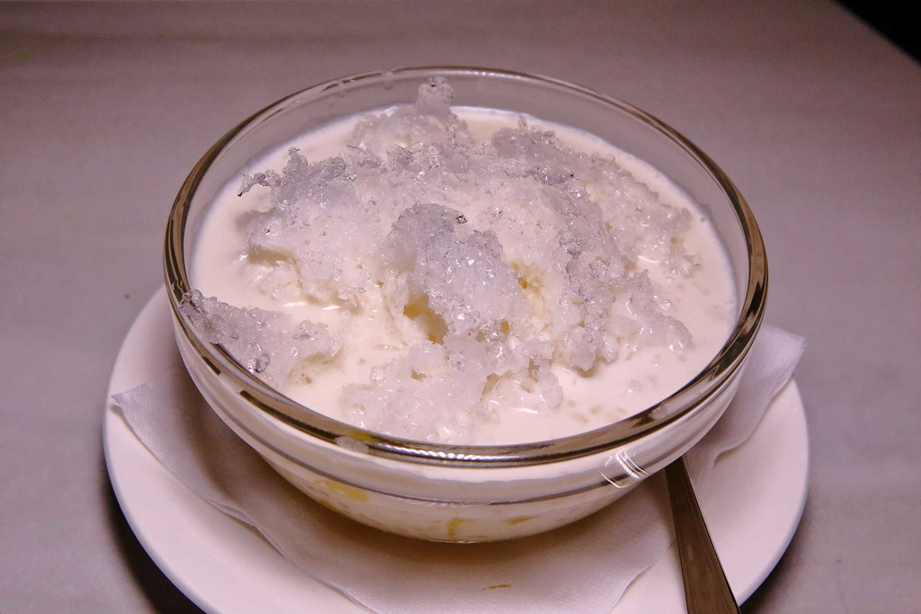 綿綿的冰沙中,加上西米、亞答枳、紅毛丹、波蘿蜜等,再淋上椰奶,口感豐富,