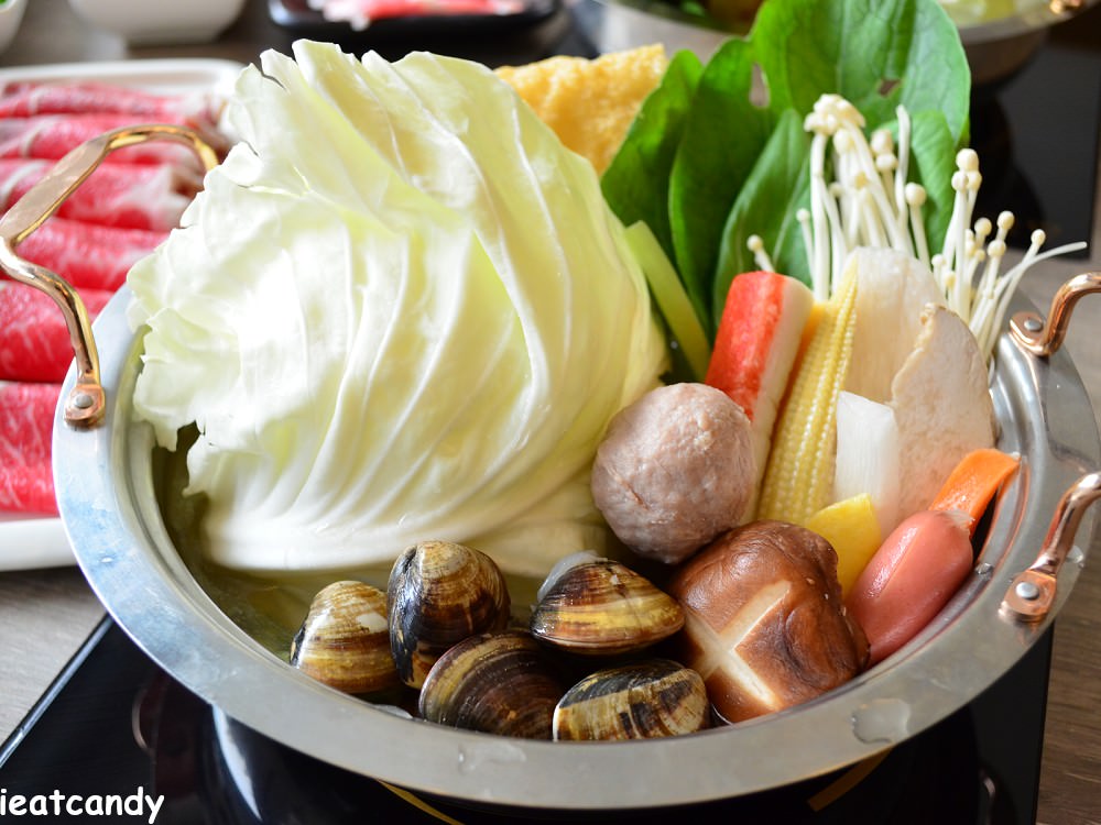 老公點的鮮美文蛤湯底+美國雪花牛,多半為自然食材這點值得讚許,一開始送來的湯底不算多,不過店員會在用餐途中過來詢問加湯,加湯都是加原先湯底,這點也是有加分!喝起來蛤蜊味道蠻濃郁的,而雪花牛肉片不少,一整份的餐點對一個小鳥胃的人吃剛剛好。