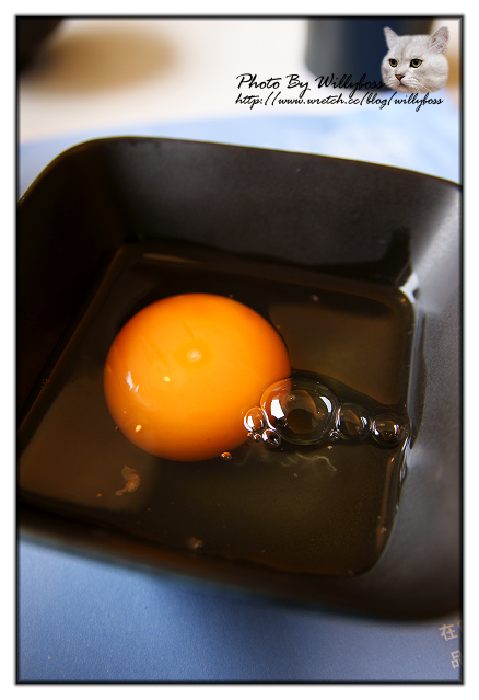 壽喜燒沾醬雞蛋,嚐趣的雞蛋是土色蛋殼橘色蛋黃,橘色的蛋黃味道硬是比較好吃。