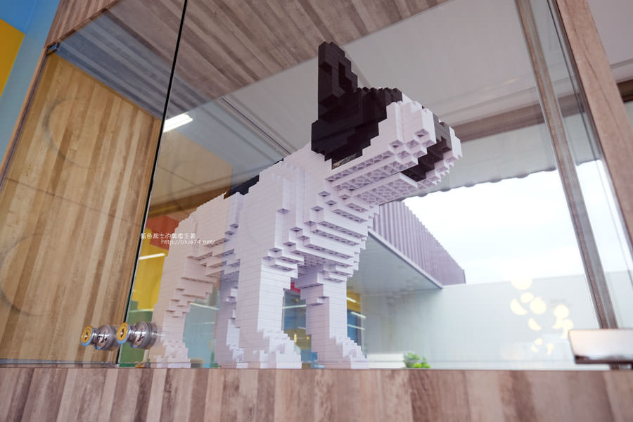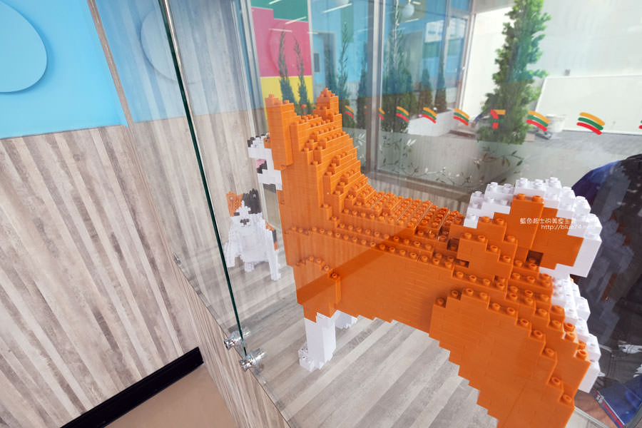 到裡面用餐區有樂高彩色牆及積木鬥牛犬..等等