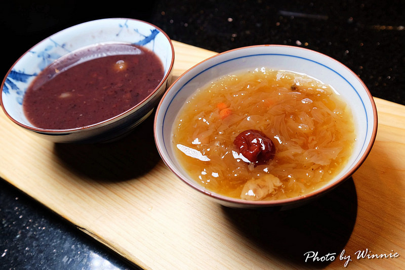 ▲飯後甜點:冰紅棗銀耳湯及熱紅豆蓮子湯,沒想到最後還有這麼一個甜蜜蜜的甜品讓我們有個完美的收尾。這兩碗甜品各有千秋,但是口味上都不會太過於甜膩,我品嚐的是紅豆蓮子湯(熱),在冬天享用隔外的合適且應景,綿密的紅豆湯裏添加了養生的蓮子,感覺就是一道女孩們都會喜歡的甜品。