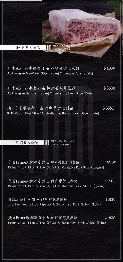▲當然愛吃肉的肉食主義朋友,也可以直接以肉為主搭配兩種不同的肉品來享用,保證大家也是吃到心滿意足!!而且囍聚的老闆也很大方,讓想吃和牛等級肉品的朋友,也可以加購價的方式$2000元將肉品升級為和牛A5等級的肉品,想吃日本和牛的朋友,千萬不要錯過這好康的機會阿!!