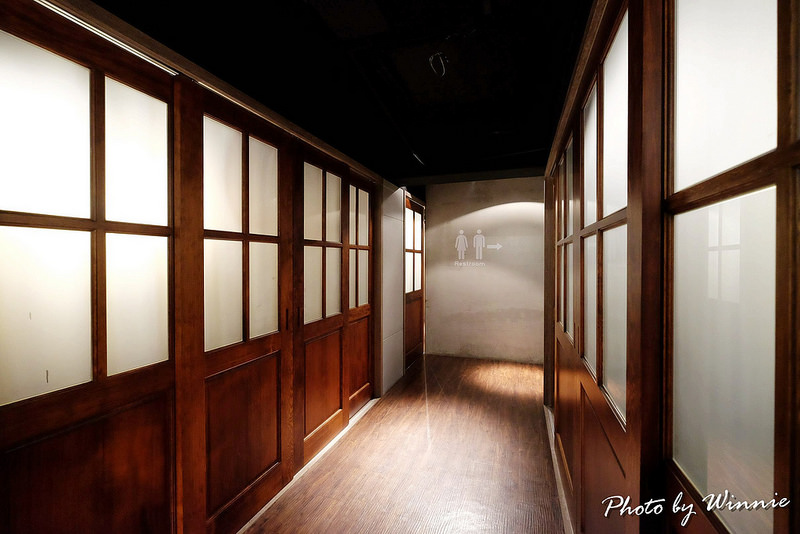 餐廳的廁所剛好也是設置在地下一樓的盡頭處,沿著指標往下走首先看到的會是有著日式風情長廊走道,而這兩側即是囍聚提供給消費者多人歡聚用餐的一個舒適包廂空間