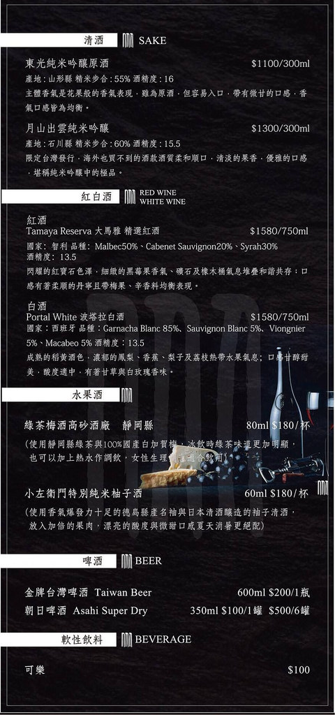 ▲美食與美酒是無法切割的關係,所以想要趁著品嚐極美的海鮮鍋物來上個一些酒精飲品與好友暢飲的話,這裏的菜單酒類選擇也不少哦!!