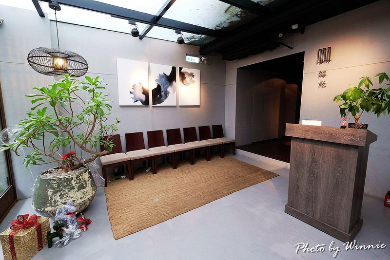 推開厚實的木門一進到餐廳,即可發現這別有洞天的候位區因為有透明天幕的關係,讓室內整體空間裏均勻產生出的柔和光線自然分布,再以中國風的潑墨的畫作及精緻吊燈點綴,營造出一種清新脫俗、靜謐高雅的氛圍,也另人相當的期待鍋物料理的表現。