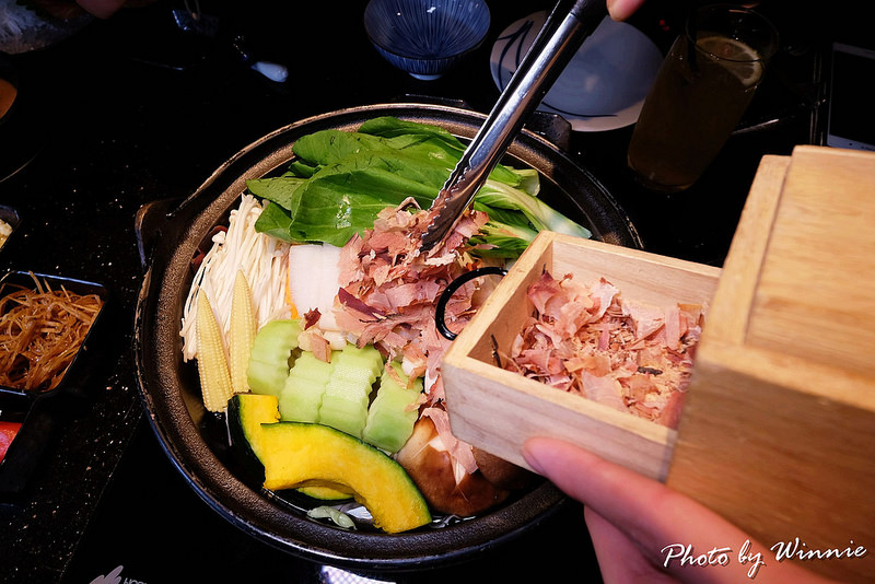 ▲唯一後來有添加的東西,僅有這味能增加湯頭香氣的柴魚片而已,看著店員拿著木盒游走在客席上為每桌的顧客放送大量的「柴魚片」時,即覺得有趣也十分的新鮮,重點是店員都不手軟的一直加量…好像客人沒喊停他們都不會停止一樣,誠意十足、服務也很讓人滿意阿!