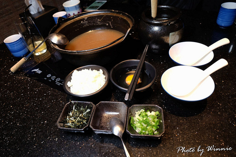 ▲首先服務生會先幫大家的鍋物食材做過打撈的動作,確認鍋中沒有殘餘的食材並加入些高湯,接著再依序的加入白飯、蛋液、海苔等食材下去燉煮