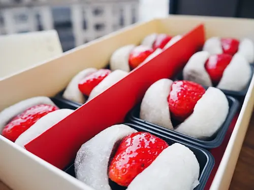 也隨季節推出不同的點心,冬季才有的草莓大福,