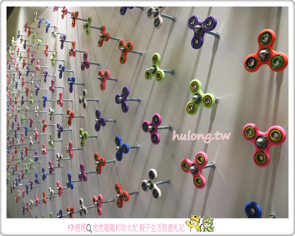 猜猜看這一面牆共有幾個指尖陀螺呢? 非常有創意、有樂子的新玩法,整片牆看起來好壯觀,記得在闖關卡上寫下答案哦,最後才能在大魔王的考試下闖關成功,領取獎品