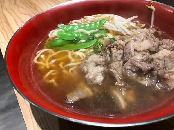 雪花牛拉麵清爽的湯頭搭配青豆很好吃