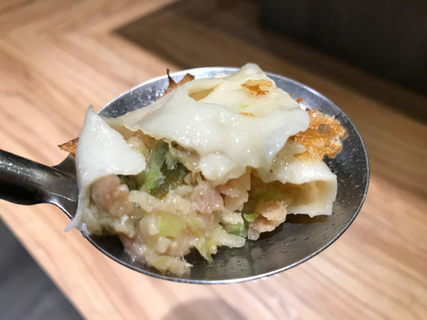 跟金門鍋貼一樣是一整盤底部有鍋巴皮的鍋貼