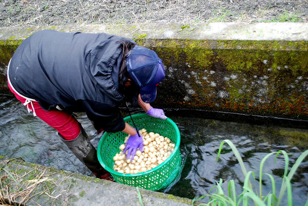 捕完了魚,上游還有野菜,從採摘時的清脆聲,就知道這野菜生長得真是好,自然栽種的翠綠顏色,是水質好壞的判斷標準,可見馬太鞍濕地環境非常好,連蔬菜都能感受到。