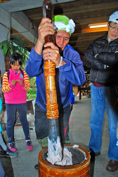 回到室內要來體驗搗麻糬,看起來簡單,實際拿起來卻是相當費力,趁熱分成小糰沾花生粉現做現吃,好像自己動手做所以特別好吃的感覺呢,哈哈!