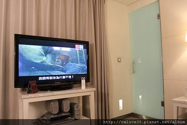 只有電視跟白色無關,但黑白搭配算是不會錯的選擇,右邊的門就是通往浴室,設計上完全不佔空間