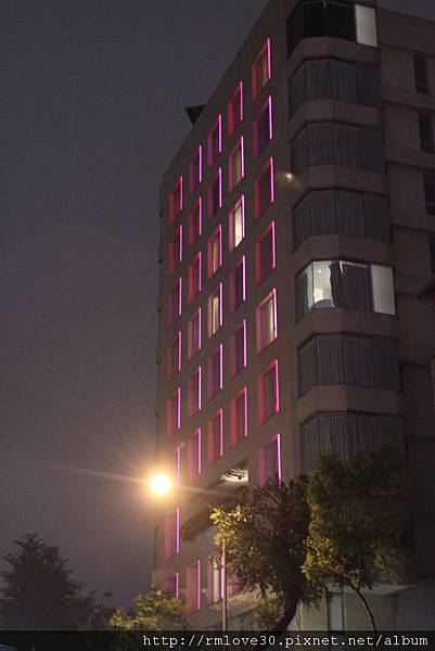 從這個角度看來,外牆就像是一面裝置藝術,會隨著時間變換燈光顏色