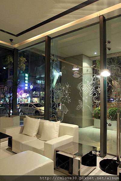 先從外面看起,大片透明玻璃上除了有些裝飾,嚴格上透光性挺高,裡面包括接待處跟休息區