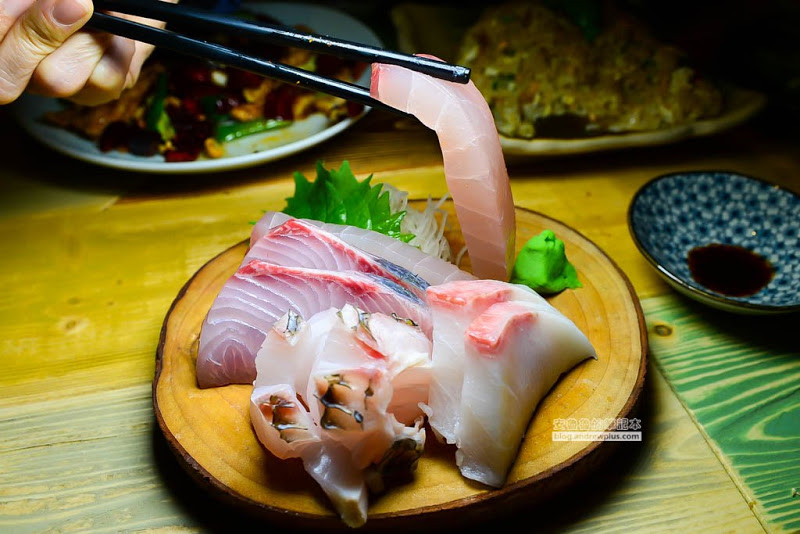 這生魚片也切得太厚實了吧!旗魚吃起來口感是軟、稠、棉,由於切得夠厚,所以咀嚼起來挺過癮的,龍占魚挺少見的,咬起來彈牙,味道鮮甜;紅甘吃起來甘甜,海鱺魚則是帶點油脂的軟甜口感