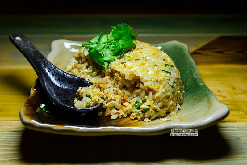 看起來就是很一般般的炒飯呀!到底雙料是哪兩種呢?如果大口大口吃不細究,吃起來最明顯的是鮭魚的香味,如果細細的咀嚼就會發現裡面有特別味道的小丁,仔細翻開來看看原來是烏魚子啦!