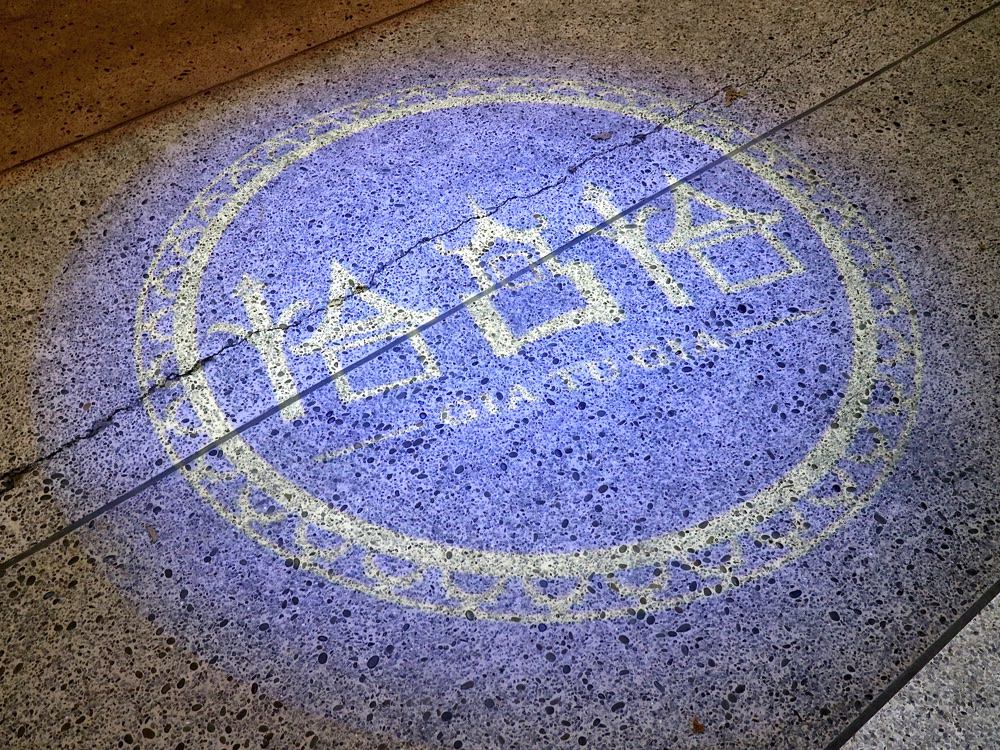 地上有店家名稱的投影燈ㄟ~ 太厲害了吧!
