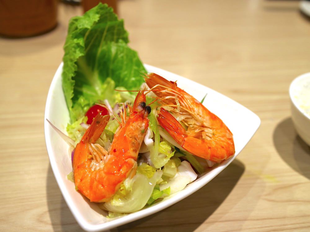 涼拌海鮮,有著兩大尾鮮蝦。皆已開背去腸泥,吃起來也較容易,非常貼心~