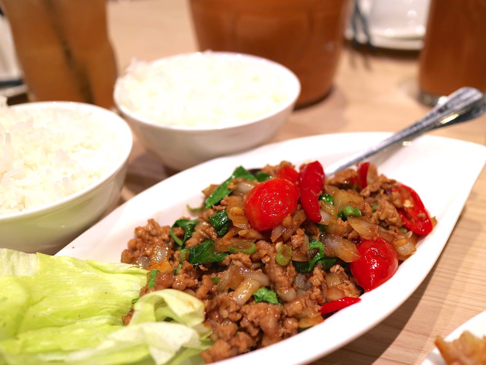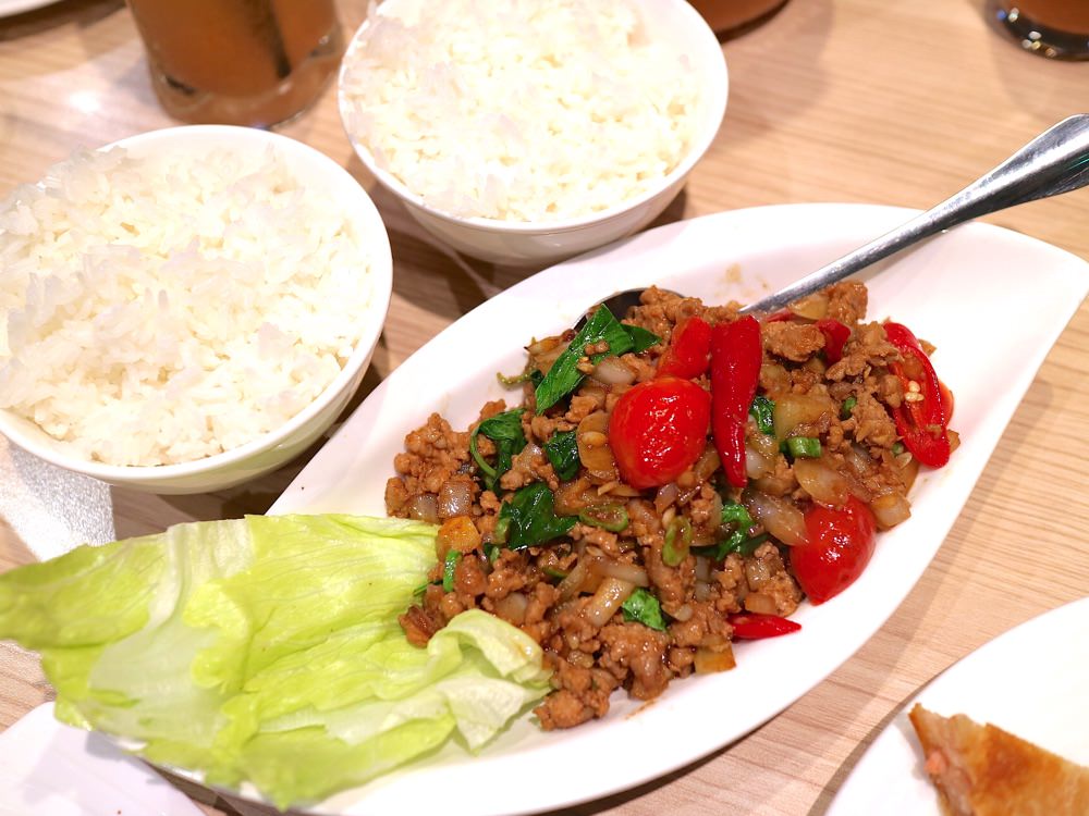 泰國菜必點的就是:打拋豬肉+泰國茉莉香米飯