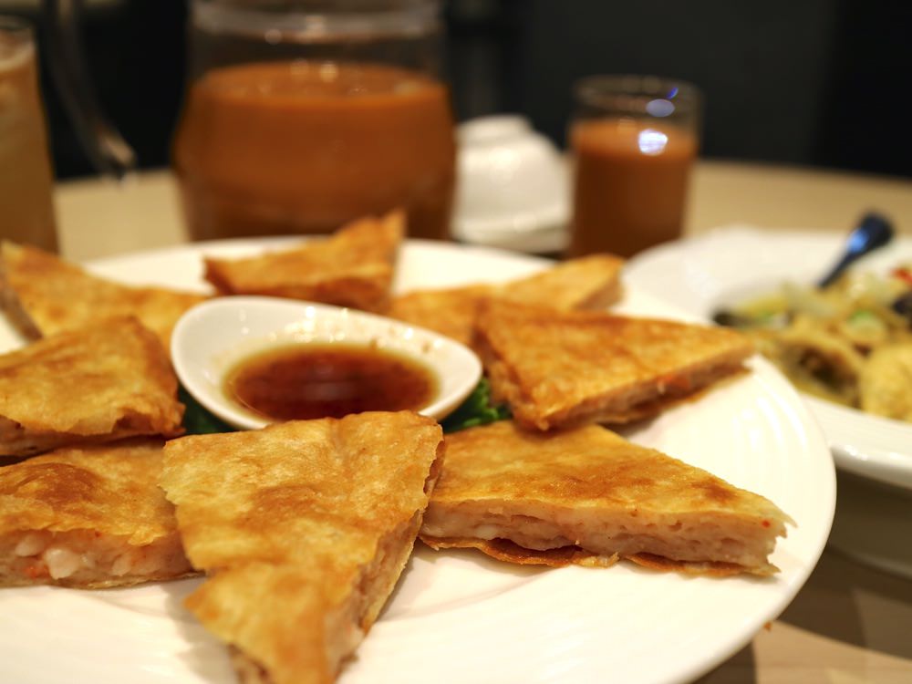 月亮蝦餅,比一般蝦餅還要厚實,趁熱吃,餅皮超級酥脆!卡茲有聲~