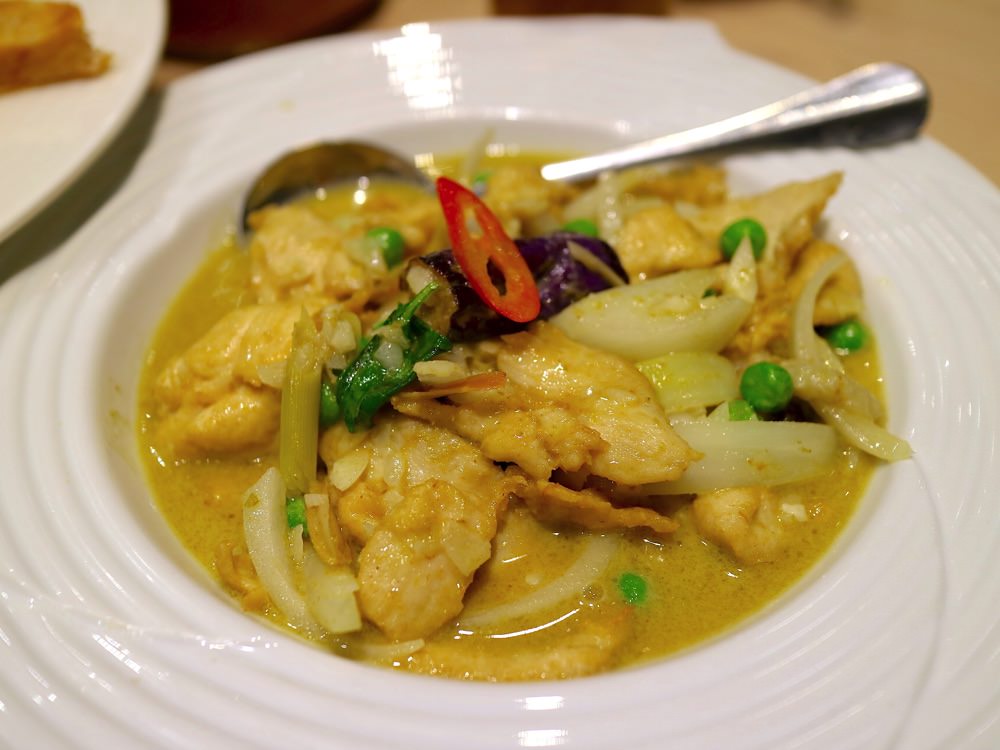 綠咖哩的香氣突出,辣味也夠,卻不至於辣嗆過人。