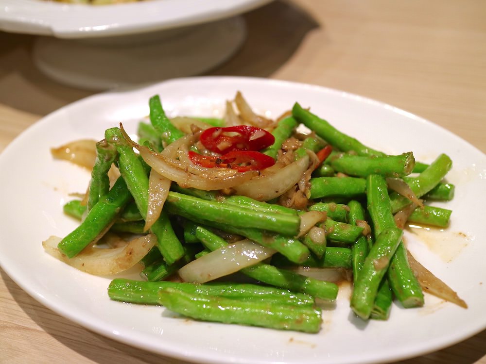蝦醬四季豆,加入洋蔥爆香,帶些蔬果的甜味,蝦醬的味道變得較不明顯。