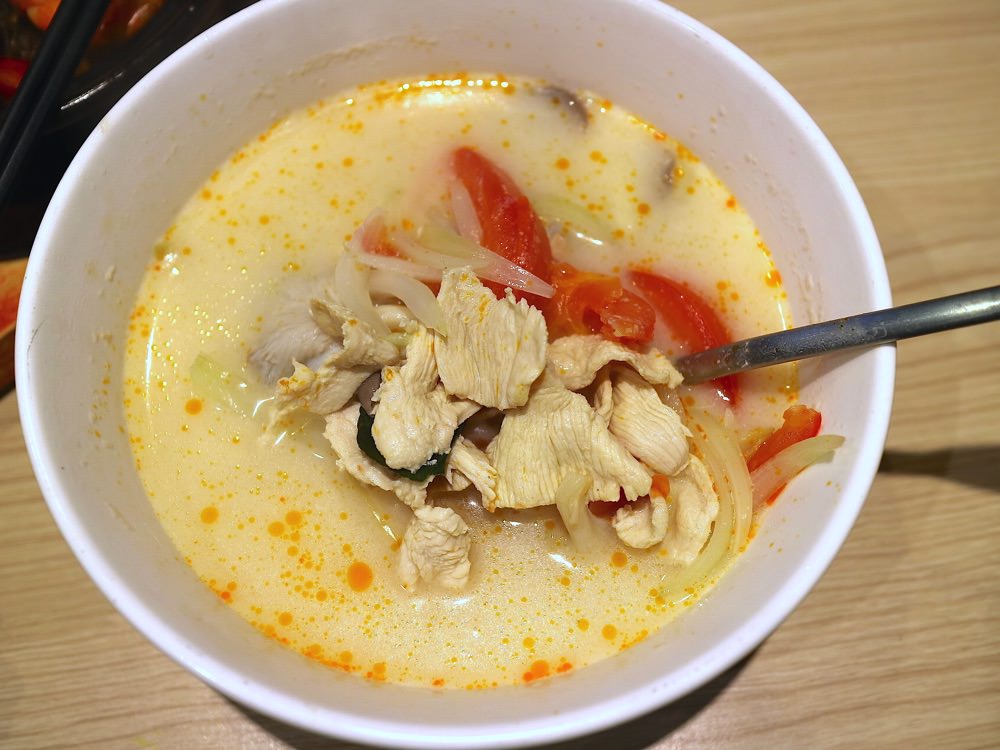 椰奶的味道明顯,又帶些紅咖哩(?)的味道,喝起來醇口,卻不顯辣感!