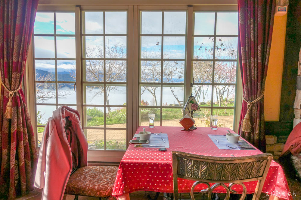 餐桌旁是大片落地窗,採光良好,而且用餐時可以欣賞群山懷抱、山霧繚繞的絕色美景,實在太享受了!