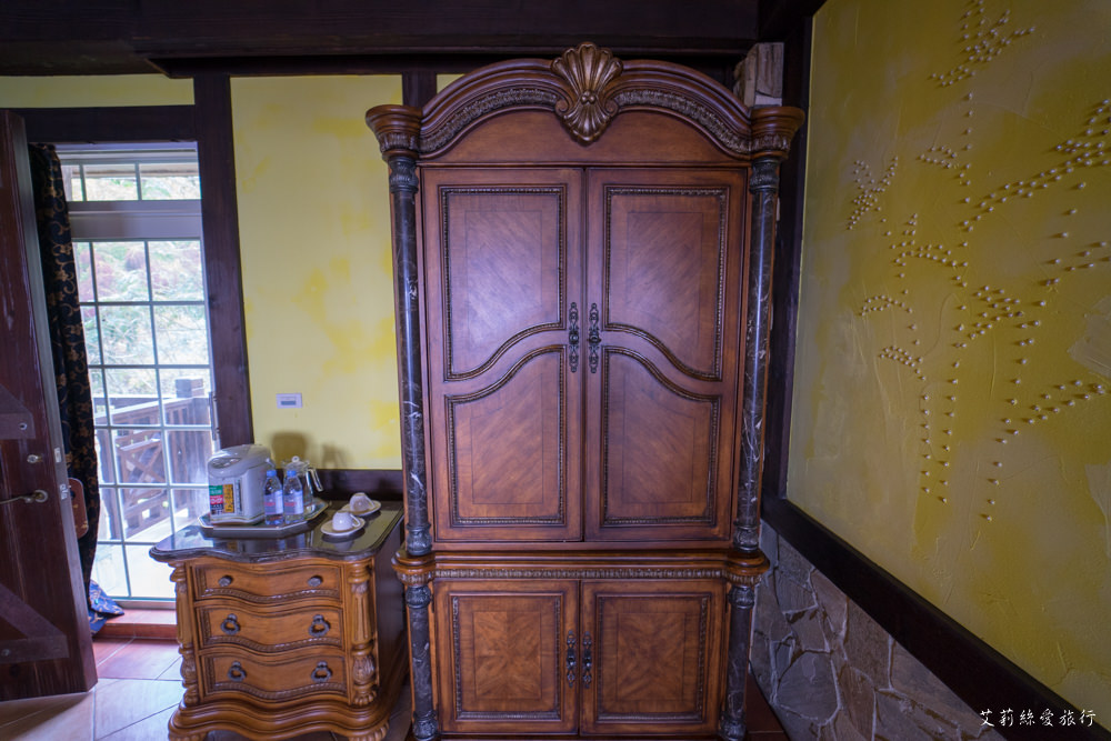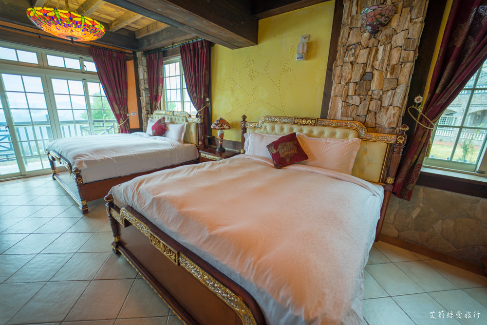 民宿內所有建材、家俱和擺設都是仿造歐式風格,從歐洲一個貨櫃一個貨櫃運回來的,家具及床架材質是實木,牢固耐用有質感,重量十足,所以入住時管家都會提醒旅客不要移動家具,一方面是重量問題,另一方面也是避免旅客搬移過程中不慎受傷