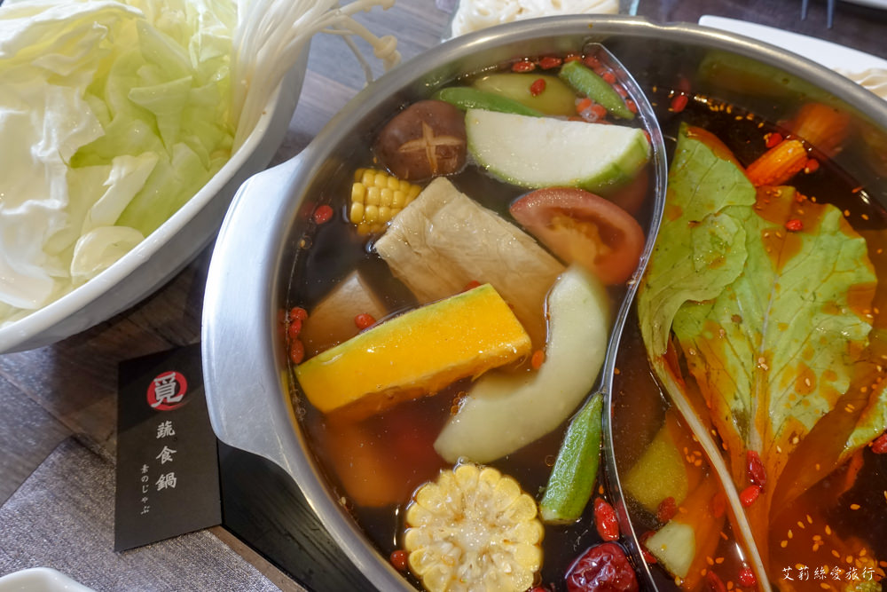 覓 蔬食鍋主打天然蔬菜食材,湯頭是店家用蔬果熬煮,沒有添加味精,菜盤沒有素料及蛋奶,全素食者可安心享用!
