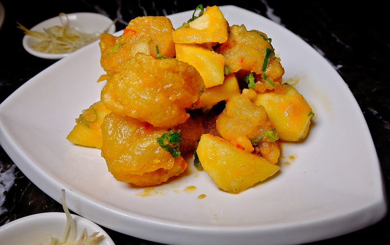 雞肉酥脆, 裹上醬汁後頗有一點韓式炸雞的感覺, 甜味與炸雞搭配的好, 滿意的一道
